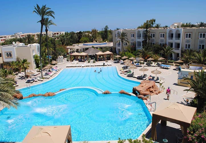Situé sur la côte est de l'île de Djerba, ce complexe de style décontracté donne sur une route bordée de palmiers. Il se trouve à 7 km du musée Lalla Hadria, présentant des expositions d'histoire régionale, et à 3 km du Grand Casino de Djerba, proposant des jeux de roulette et des machines à sous.Les chambres et suites sobres sont dotées d'une salle de bain attenante, de la télévision par satellite, d'une terrasse et d'un mini-frigo. Des coffres-forts sont à disposition en supplément. Le petit-déjeuner buffet est proposé en supplément. L'établissement comprend une piscine extérieure claire, un vaste coin salon avec bar, un spa, une boîte de nuit et plusieurs restaurants. Des animations sont également organisées et un service de prêt de kayak gratuit est à disposition.