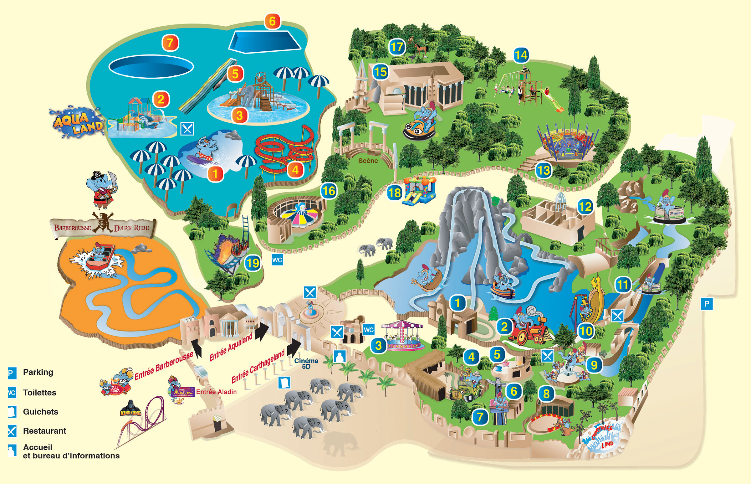 Le parc d’attractions de toute la famille par excellence, divertissement et loisirs sont au rendez-vous avec un personnel qualifié pour vous faire vivre des moments inoubliables et passer une journée pleine d’émotions. Vingt attractions thématisées vous attendent pour vous faire revivre l’expérience des temps carthaginois. Rafraîchissez-vous le temps d’une baignade à la piscine ou d’une glissade aux toboggans au parc Aqualand. D’autres attractions et découvertes culturelles vous attendent notamment Médina Voyages, Ali Baba.