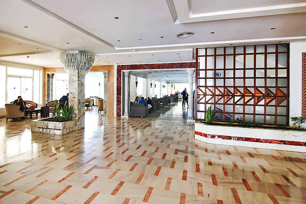 Entouré de palmiers, le bâtiment est un grand complexe hôtelier. L’hôtel est entièrement climatisé et composé de deux pavillons dont trois appartements répartis sur trois étages desservis par 3 ascenseurs et un bâtiment récent de 16 chambres. Chaque chambre est dans l'une des 252 chambres et suites de l’hôtel, offrant un séjour lumineux, spacieux et élégant. Tout l'air conditionné et sont équipées d'un minibar, d’un coffre-fort, d’une salle de bain privée avec douche et baignoire, une télévision, d’une climatisation et d’un réfrigérateur. L’accès Wifi est gratuit. chaque chambre de l'hôtel affiche une décoration raffinée,, et ayant un balcon privé pour votre paix et sérénité .