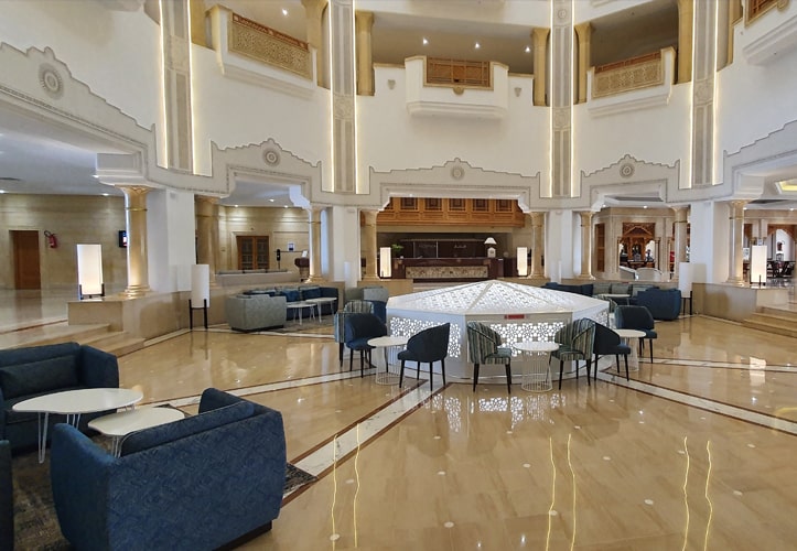 Bars : Carthage, le grand salon bar, Bacchus, le bar américain, Chicha, le café maure, Mosaïque, le café glacier et le Beach Bar.